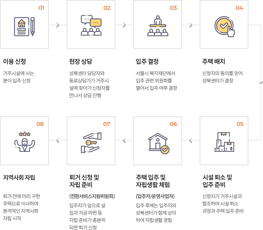 일정기간 체험홈에 거주하면서 지역사회 내에서 자립생활을 경험해볼 수 있도록 일상생활 및 사회적응을 체험하는 곳입니다.