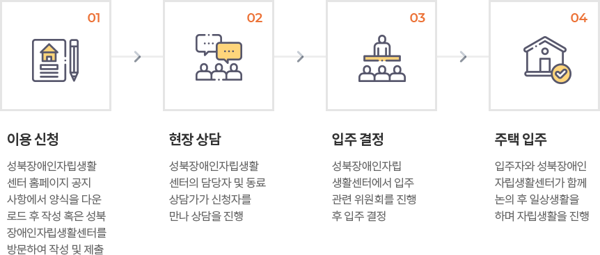 자립을 원하는 장애인이 거주시설에서 나와 당장 자립을 하는 것은 매우 어려운 일입니다.